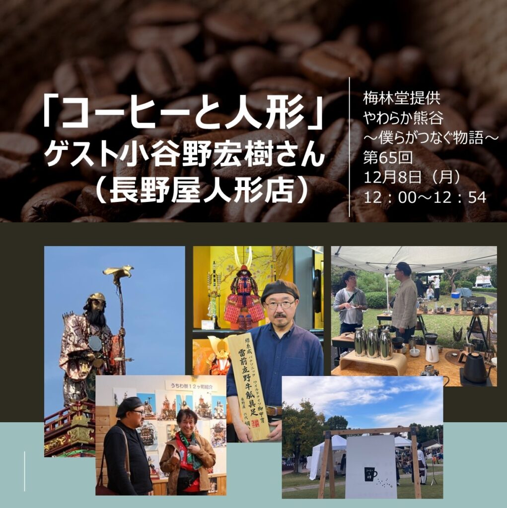 12月8日(月)FMクマガヤ 梅林堂 提供 やわらか熊谷 僕らがつなぐ物語 第65回「コーヒーと人形」を放送しました